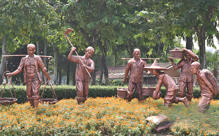 通過多人物組合再現市井畫卷,如《老長沙》系列的補鍋匠與圍觀群眾9,讓游客沉浸式感受城市歷史。